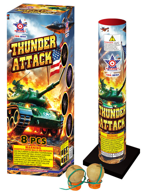 8 assorted breaks shell, all with whistling tail, mixed color star, glitter, palm, brocade crown and crackling. |